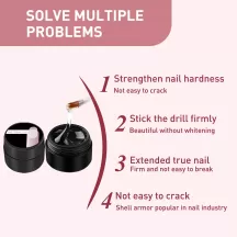 【Solve Multiple Problems】1.Strengthen nail hardness.Not easy to crack; 2.Stick the drill firmly.Beautiful without whitening; 3. Extended true nail.Firm and not easy to break; 4. Not easy to crack.Shell armor popular in nail industry