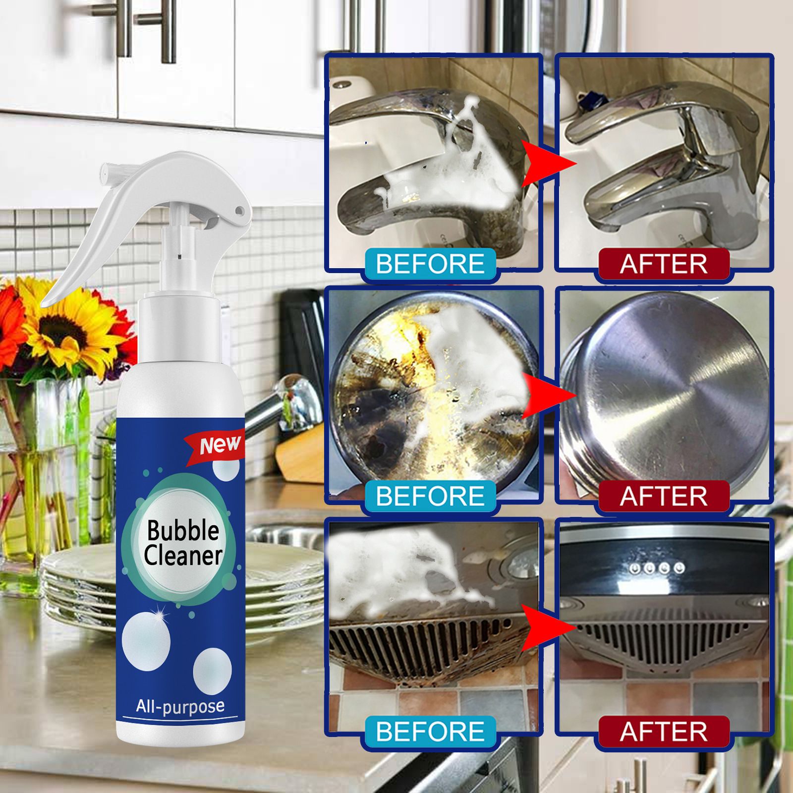 【Effective Grease Cleaner】The Kitchen Cleaner can effectively resist kitchen oil stains, burning marks, stubborn dirt, etc., penetrating stubborn grease and grime for cleaning.
