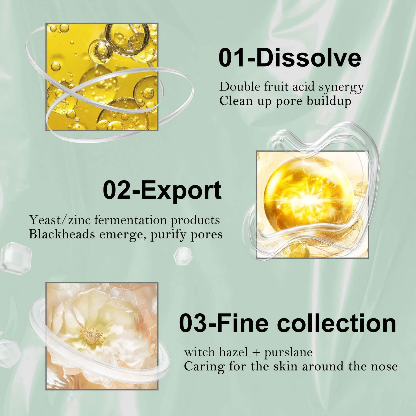 【Safe & Effective】Unclog the pores, loosen the blackheads in the pores, make the blackheads automatically output to the skin surface, remove the blackheads, and will not damage the pores.Contains natural firming factors to tighten the swollen pores and make the skin smooth and delicate